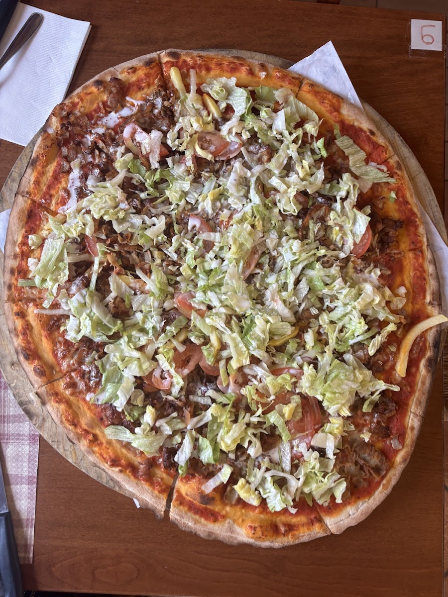 I had the pleasure of trying the Shawarma Pizza at this fantastic place, and I must say, it was absolutely amazing! It's hands down the best Shawarma Pizza I've ever had in Europe. The flavors were out of this world, and every bite was a delightful explosion of taste. Not only was the food exceptional, but the location itself was beautiful. It provided a charming and cozy atmosphere that added to the overall experience. What truly sets this place apart, though, is the wonderful family that runs it. They are some of the nicest and most helpful people you'll ever meet. Their warmth and hospitality made the dining experience even more special. Service here is super fast and great, ensuring you don't have to wait long to indulge in their delicious offerings. All in all, I can't recommend this pizza place enough. If you're in the area, do yourself a favor and stop by. You won't be disappointed!